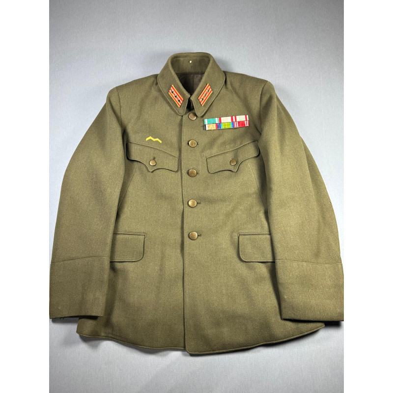 A superb quality Japanese WW2 officers tunic, we believe it is of a "colonel" rank. The tunic is in overall very good condition, showing light signs of use and age. The tunic includes insignia and ribbons (we are unsure about the ribbons being original to the tunic, though these could be taken off easily). The inside of the jacket has a tailor tag (back of the neck) and a name sewn into the liner.