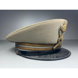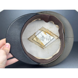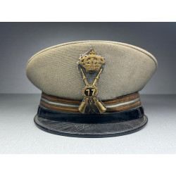 A nice, overall good condition, Italian WW2 era 17th infantry regiment M34 officers (lieutenant) visor hat. Shows some age and wear, with a little portion of the trapezoid having chipped away with time. A good size 57.