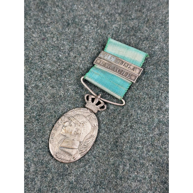 A nice, worn Spanish Moroccan campaign medal for officers (silver version) with double clasps MELILLA & LARACHE.