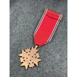 A stunning and unusual medal, this is a Spanish manufactured "Order of the German Eagle", usually made as a replacement for Blue Division members. This rare "licensed" version was manufactured in a simple single sided design, featuring all the recognizable styling of the German version, but in a lighter and lesser quality. A nice medal with unique history, harder to find than its German father.
