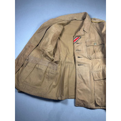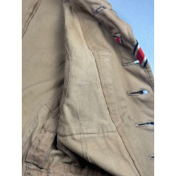 A stunning tunic, this is a perfect example of a WW2 tropical style Luftwaffe NCO´s tunic. Complete with EKII ribbon and original sewn insignia. The tunic also includes the rare NCO shoulderboards (with yellow pipping for pilots or paratroopers). This tunic would be perfect for a combat display!