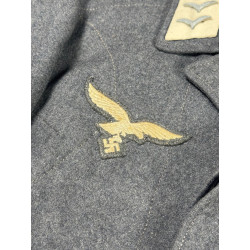 A superb offering, this WW2 German Luftwaffe "Hermann Goring" combat tunic is an amazing piece and we are very lucky to offer it out to the public. The tunic has all of its original insignia, untouched, with the "Hermann Goring" cufftitle. This particular tunic is void of damages, excluding a small period repair on top of the cufftitle, barely noticeable.