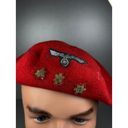 A superb beret belonging to Adolfo Garcia Calvo (captain in the Blue division). This beret came to us from a well known collector who received it from his family, we have since contacted the family and confirmed its provenance. The beret is a classic Spanish Civil War era beret that has had rank insignia and a german eagle added to the front, this was quite common amongst Blue Division members (we can provide photos for reference to any interested parties).