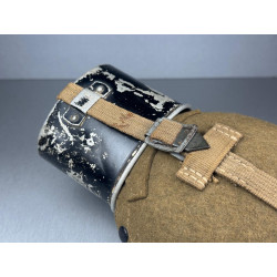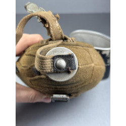 This large 1L size combat canteen would have been issued to mountain troops or medical troops, though other units did use them. This specific one we are offering comes with a "tropical" strap, in overall good condition with markings (we always recommend being careful not to pull or open too often to ensure the strap does not break, as these items are 80+ years old). The canteen cup still retains most of its black paint and is dated 1940. The felt cover is stone cold mint, probably the nicest cover we have ever had in store. The aluminium bottle is dated 1942.
