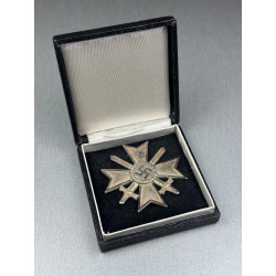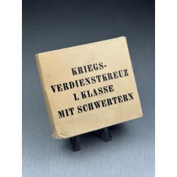 A superb MINT German KVK1 with swords, box and outer factory cardboard box (very hard to find as most got discarded). This award sat at around the same height as the Iron Cross first class, and is one of the most iconic German medal designs of all time. This particular model is marked "1" for Deschler & Sohn. The box is a classic second model and the cardboard box is only missing one closing lip but other than that it remains in fabulous condition.
