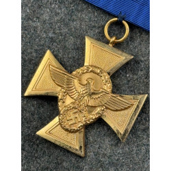 A beautiful German WW2 "25 year long service" police medal, one of the most interesting Third Reich medal designs. Complete with embroidered ribbon. Perfect for display.
