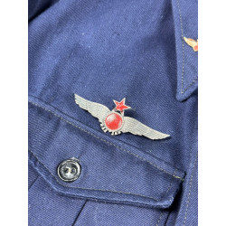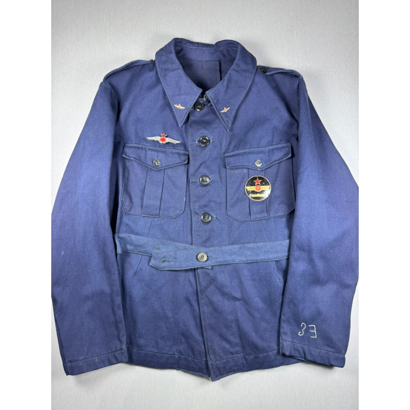 A stunning and exceptionally rare Spanish Civil War air force tunic, sporting Republican insignia, this style of tunic was commonly seen used by international volunteers and Soviet troops/pilots (this particular one coming from a Soviet pilots home). All insignia are untouched, as is the jacket and its matching belt.