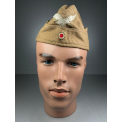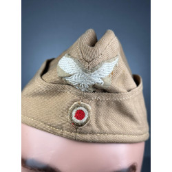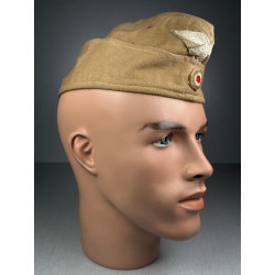This German tropical Luftwaffe tropical sidecap features a great set of original applied insignia, overall good patina. On one side, two holes can be noted, possible insignia was placed there?